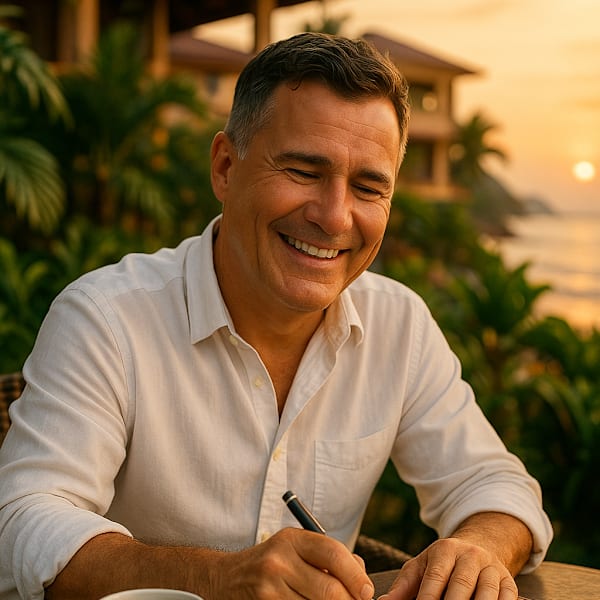 When he’s not writing, Delorenzo finds peace in island life, distant shorelines, and the slow, meditative rhythm of boats, books, and solitude.